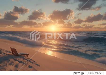 Serene Sunset Beachscape with Solitary Chaise Lounge