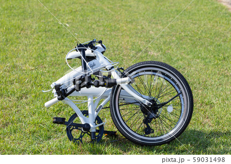 白い折りたたみ自転車_自転車のみ・無人・人無し_サイクリング・買い物