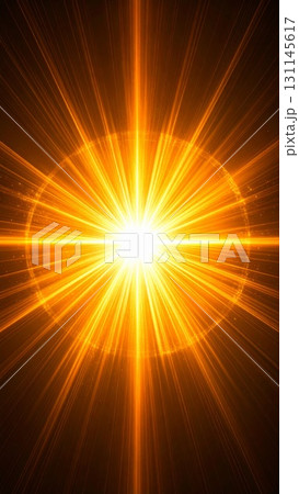 Abstract Glowing Golden Light Burst with Star Flare and Radiant Energy Beams