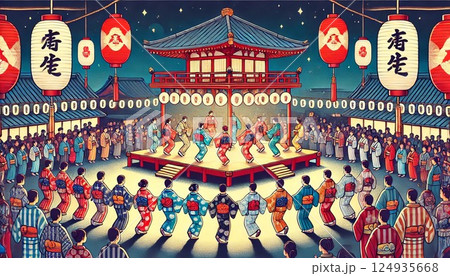 盆踊り。日本の伝統行事。ベクター素材