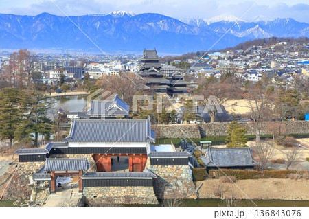 【長野県】晴天の松本城と北アルプス