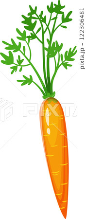 Illustration of a bright orange carrot with lush green leaves, showcasing its fresh and organic appearance. Perfect for themes related to healthy eating and agriculture