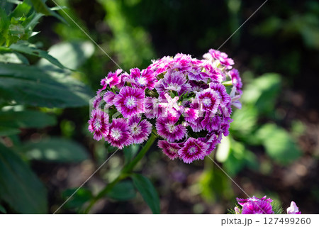 Beautiful cluster of vibrant purple flowers blooming in a lush garden during the spring season