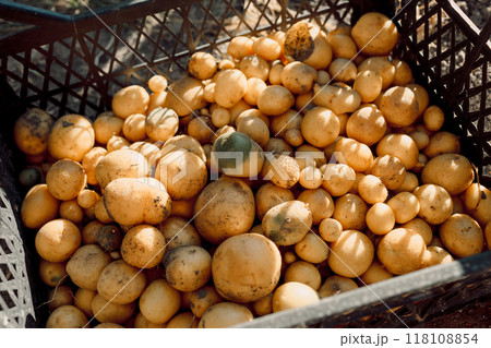 【美瑛町 コンテナに詰められた収穫したジャガイモ】