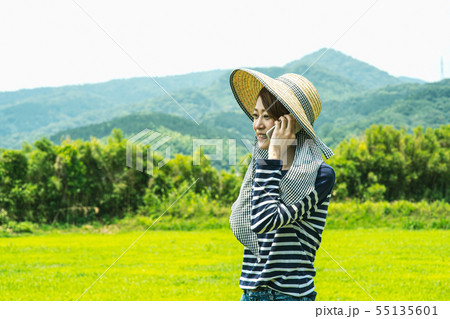 農業 スマホを持つ農家の女性