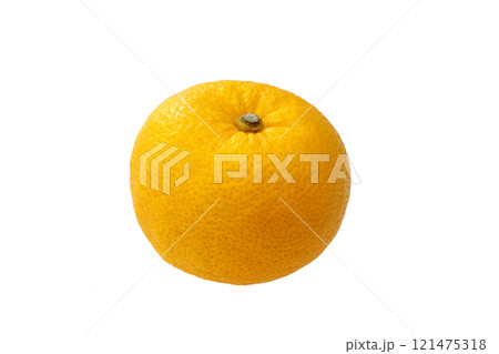 白背景のゆず 柚子の実一つ