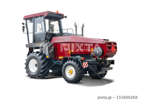Red agricultural tractor isolated on white background showcasing durable design and practical features for farming tasks