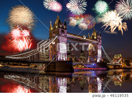 Firework at Odaiba rainbow bridge Tokyo Japan with selective soft focus for use as background image