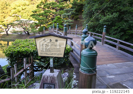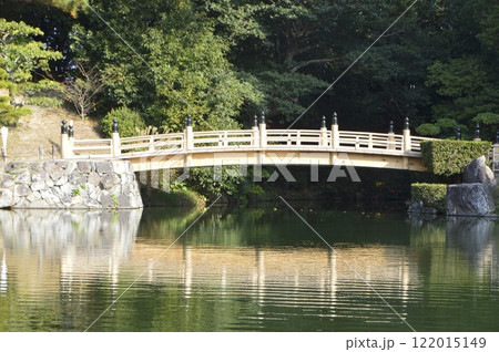日本 香川 高松 栗林公園 日本庭園 池 迎春橋