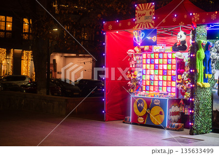 Yerevan Armenia 1.5.2026. A carnival tent with a panda bear and a sign that says "You're welcome"
