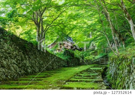青もみじに包まれた百済寺の表参道