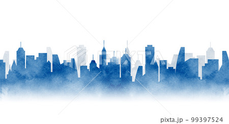 青空と都市の風景 水彩風イラスト 高層ビルと爽やかな街並み