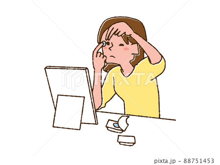 コンタクトレンズをつけている女性 コミカルな手書きの人物 ベクター、線画にカラー