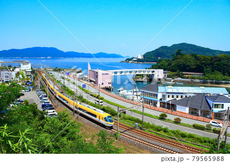 鳥羽市の町並みと近鉄特急伊勢志摩ライナーの風景
