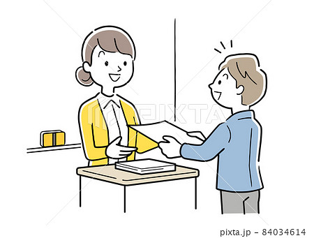 ベクターイラスト素材:先生からプリントを受け取る中高生の男子