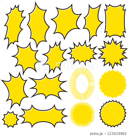 使いやすいギザギザ 爆発 吹き出し フレーム セット イエロー