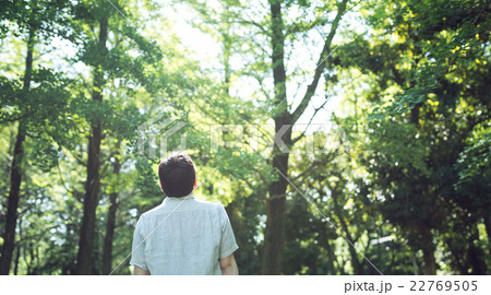 森のなかの男性