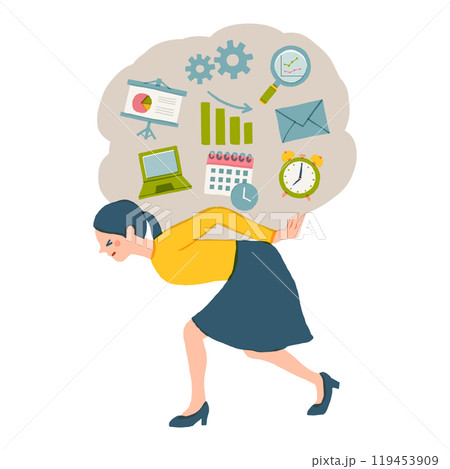 たくさんの仕事を抱える女性のイラスト