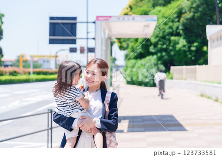 仕事前に子どもを保育園に送るワーママ