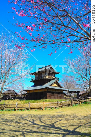 逆井城跡公園 逆井城二層櫓と桜-逆井にて