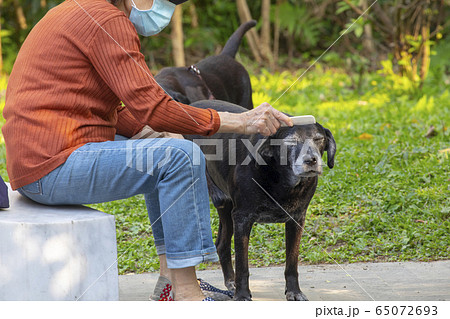 老人,老狗,梳裡毛,老人、老犬、髪をとかす、Old dog, combing hair,