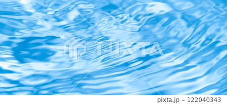 Blue water texture background. Clean transparent water surface with rings and ripples. Summer concept. Flat lay