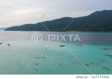 Aerial top view of clear blue turquoise seawater, Andaman sea in summer season. Water in ocean material surface pattern texture wallpaper background.