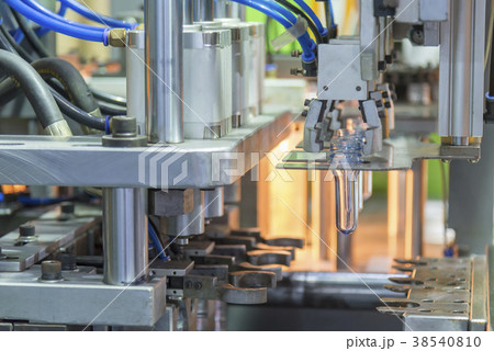 Close up scene of group of preform shape of PET bottle products in the light blue scene.