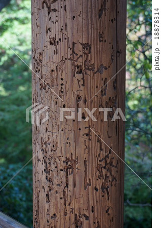 京都東山「東福寺」:通天台の柱の虫による食害跡