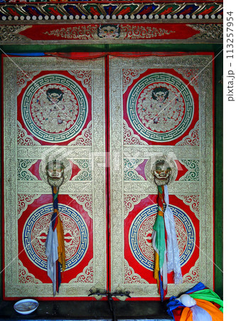 中国 青海省 チベット仏教寺院 和日寺 扉