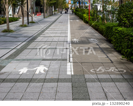 歩行者通行帯と自転車通行帯の区分け