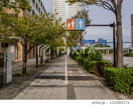 東京都江東区東雲、歩道の自転車通行帯