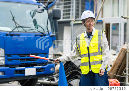 交通誘導する警備員