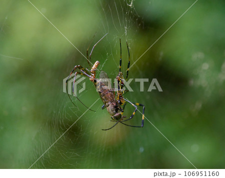 ジョロウグモ科ジョロウグモ♂♀の捕食行動