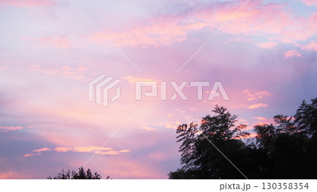 9月の夕暮れの空と木のシルエット