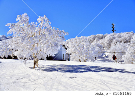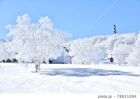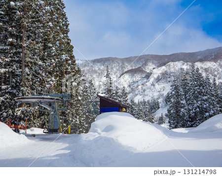 スキー場内の谷間を跨ぐ連結リフトの降車エリア (新潟県、南魚沼市、舞子)