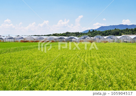 稲作と温室ハウス ハウス栽培 温室栽培の風景 イメージ素材 農業