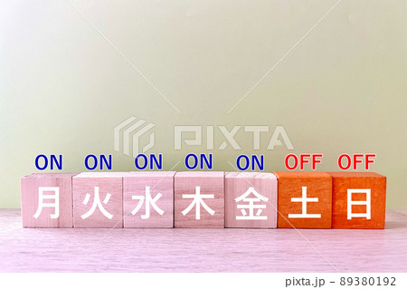 週休2日のイメージ|積み木や本が置かれたオフィスのデスク