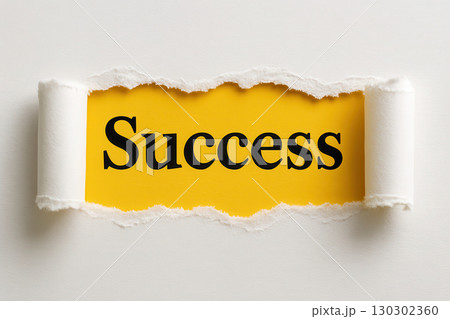 Torn paper edge reveals word success on bright yellow background, symbolizing achievement, motivation, and inspiration in creative and uplifting style