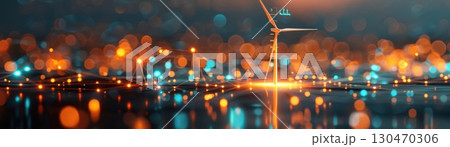 青い光のエネルギーフローとデジタルネットワークの抽象イメージ