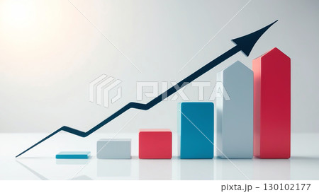 Abstract financial chart showing growth with colorful bars and upward arrow, symbolizing progress and success