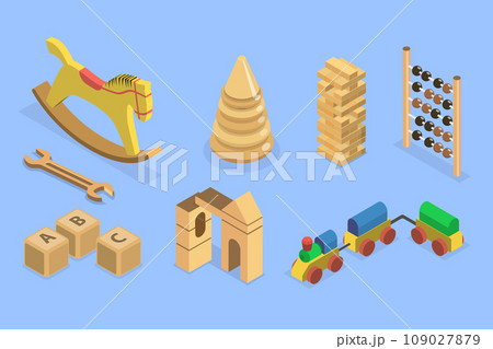 3D Isometric Flat Vector Set of Montessori Wood Toys