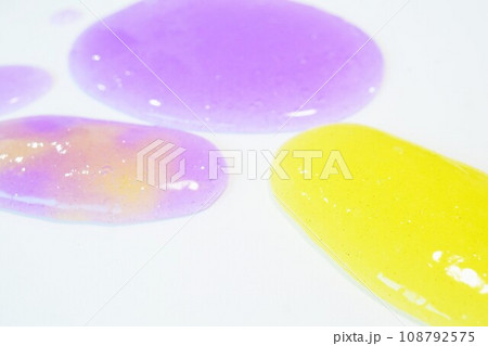 白背景にラメの入った黄色と紫色の混ざった綺麗なスライム