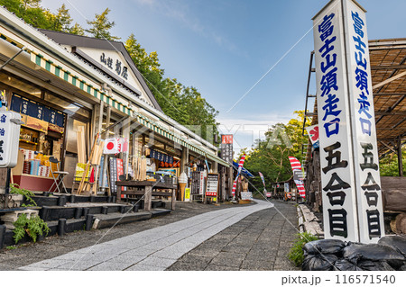 静岡県の駿東郡小山町須走にある富士山五合目は富士登山のエントリー場所で看板には「富士山五合目須走口」