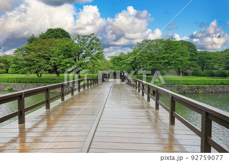 神代植物公園の水生植物園 入口 春晴れの青空 東京都調布市