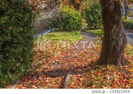 落ち葉散る琵琶湖疏水沿いの散策路 京都市
