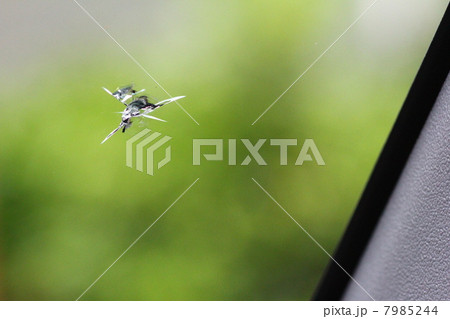 車のフロントガラスに飛び石が当たって出来た傷(ひび割れ)