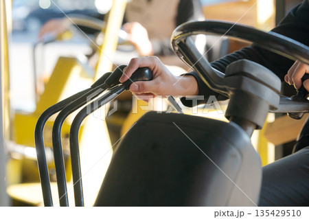 フォークリフトを運転するシニア男性