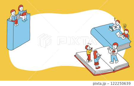 ベクターイラスト素材:おうち時間、ステイホーム、家で読書をする家族