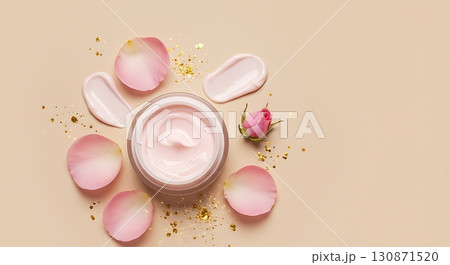 Luxurious Cream Jar Surrounded by Pink Petals on Soft Beige Background